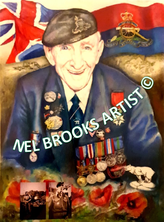 Stanley took part in D-Day and the subsequent liberation of Holland and Belgium. The black and white photos in his portrait show him at Arnhem, already battle hardened. At Arnhem he faced 70,000 Germans to 10,000 allied troops (8,000 of our allied troops were killed, injured or captured).